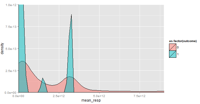 1. Density plot for mean response time : As you can see from below chart, Robots have some fixed time lag between their bids. However, humans take non-regular time between bids. This looks very intuitive as robots will be programmed to bid and hence show a common pattern.