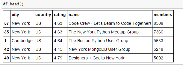 Time to identify top two groups from each country based on number of members. You can also identify the groups based on rating. Here I have done basic analysis to illustrate this approach. You can access other API’s also to find information like upcoming events, number of events, duration of events and others and after that merge all the relevant information based on group_id (or key value).