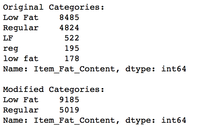 data['Item_Fat_Content'] = data['Item_Fat_Content'].replace({'LF':'Low Fat',