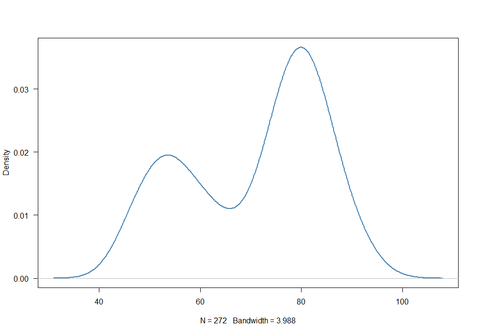 4) Which measure of central tendency suits the best for this bi-modal distribution?