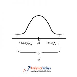 Confidence interval = (sample mean – Margin of error, sample mean + Margin of error). The size of the interval is determined by Margin of error. Margin of error = 2 * Standard error, Standard error = Standard deviation/sqrt(n).