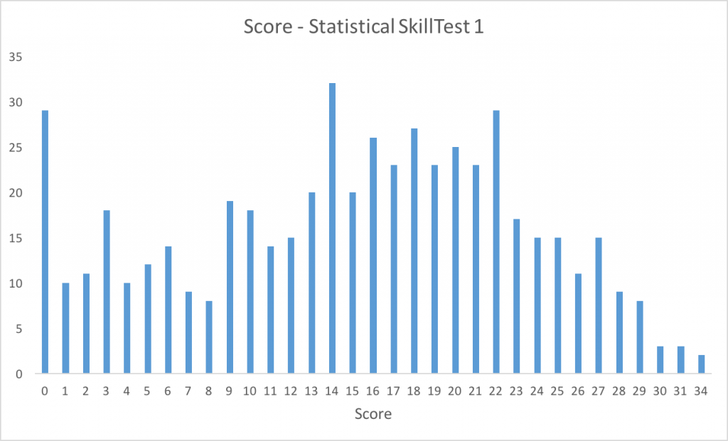 Who could have asked for a better way to analyze the results of a statistical skill test on this topic? Here is the distribution of the scores: