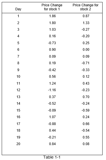 36) An investor obtains a random sample of 20 daily price changes for stock 1 and 20 daily price changes for stock 2.  He wants to compare whether the stocks are similar in nature. These data are shown in the table below.  Use alpha = 0.10. With have evidence to believe that the stocks are: