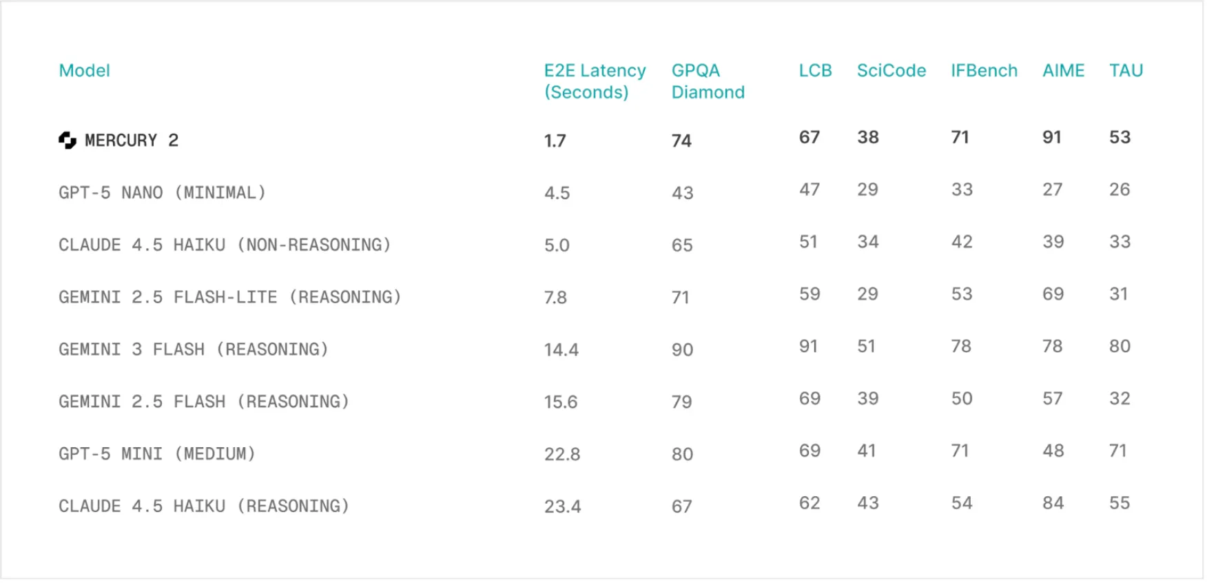 The speed of the Mercury 2 reasoning model is its most prominent quality. It has a throughput of approximately 1,000 tokens in benchmarks. In perspective, other popular models such as Claude 4.5 Haiku and GPT-5 mini run at roughly 89 and 71 tokens per second, respectively. This increases Mercury 2’s speed by more than tenfold. This is not just a figure on a chart, but it represents a difference in the real world. To handle more complicated tasks, it can take other models several seconds to answer a question. Meanwhile, Mercury 2 can answer a question in less than two seconds.
