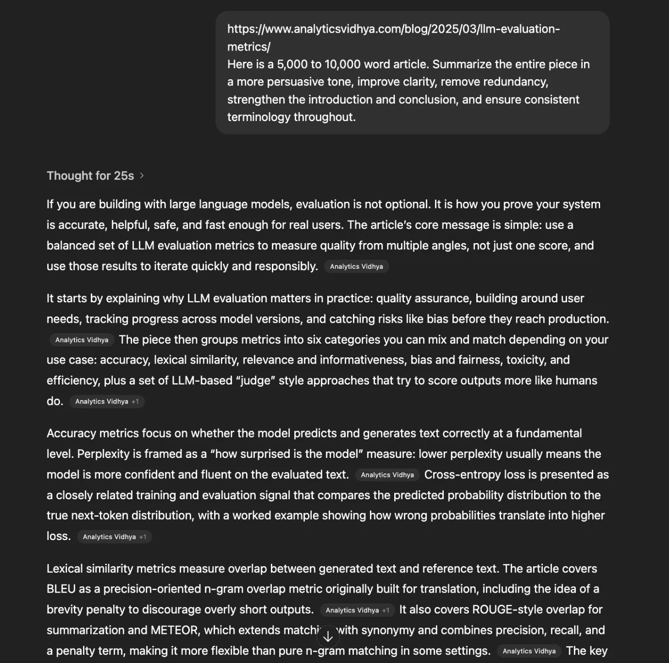 Here is my previous article about LLM Evaluation metrics, which is pretty large to read. Let’s try to summarize it section-wise, and let’s see how much time it will take.
