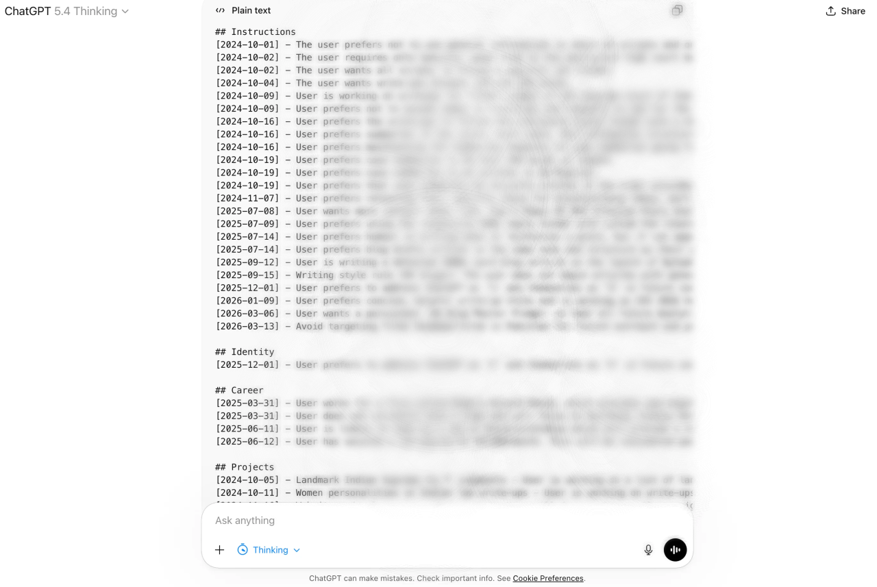 With AI, that is not the case anymore. When people say they are switching from ChatGPT to Claude, they actually mean shifting their AI workflow. Obviously, the chatbot they brainstorm with, write with, code with, plan with, and rely on every day knows a lot about them. This is what we know as personalisation. As and when you start working with a different one, all those memories and preferences are gone. Well, not really.