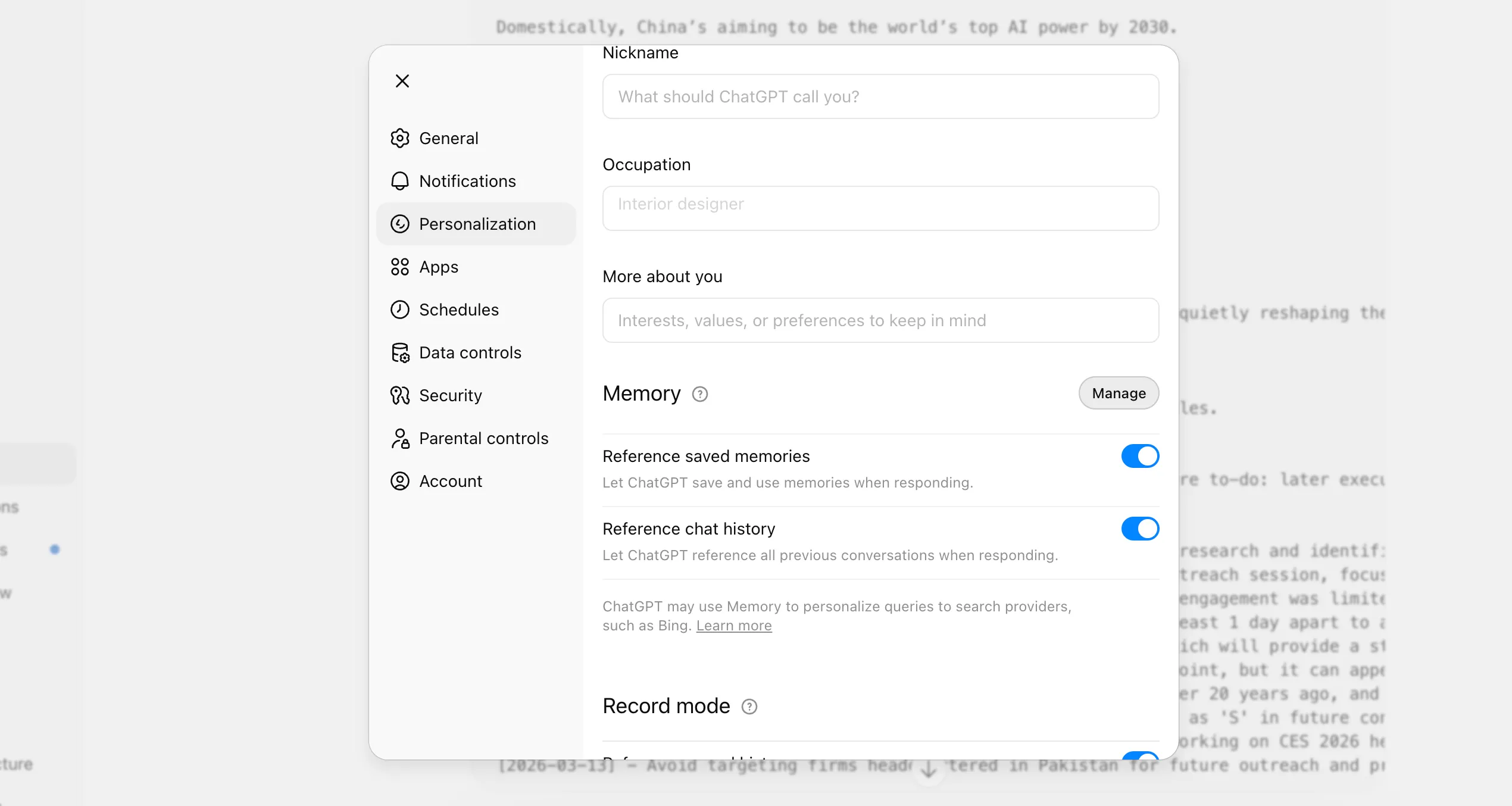 This essentially targets all your stored memories with ChatGPT. To access it: