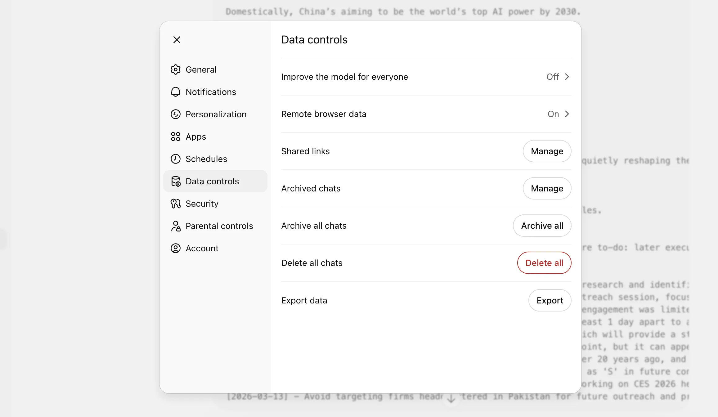 Make sure to export your data first, so you have it with you just in case you wish to revert to ChatGPT at any point in the future.