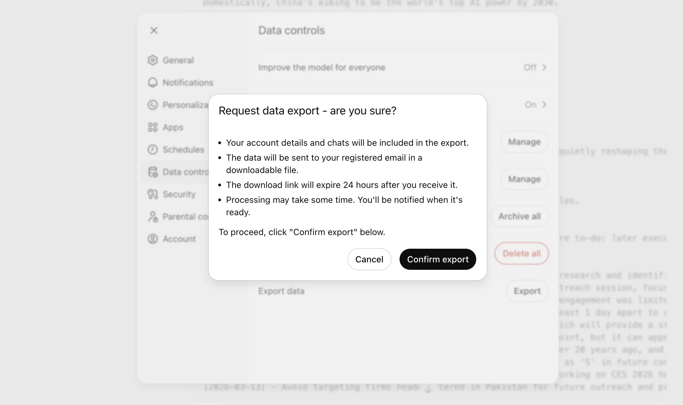 So take some time and go through the data that you have pulled from ChatGPT. I am sure you will find parts that are completely irrelevant now. After all, the very fact that you want your data transferred means that you have been using ChatGPT for long, and with time, there will be activities that are of no use any more.